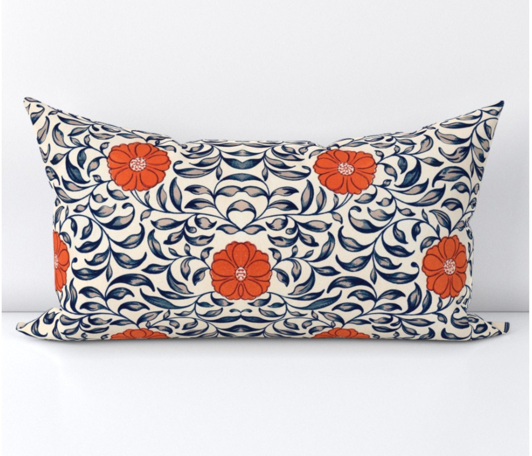 Vintage inspired floral print style pattern will be a perfect pop of color for your home. You can mix and match with other monogram pillows as well. The lumbar cover is printed from Water-based pigment inks and dyes with Digitally printing technology and eco-friendly, sustainable and scalable manufacturing processes.