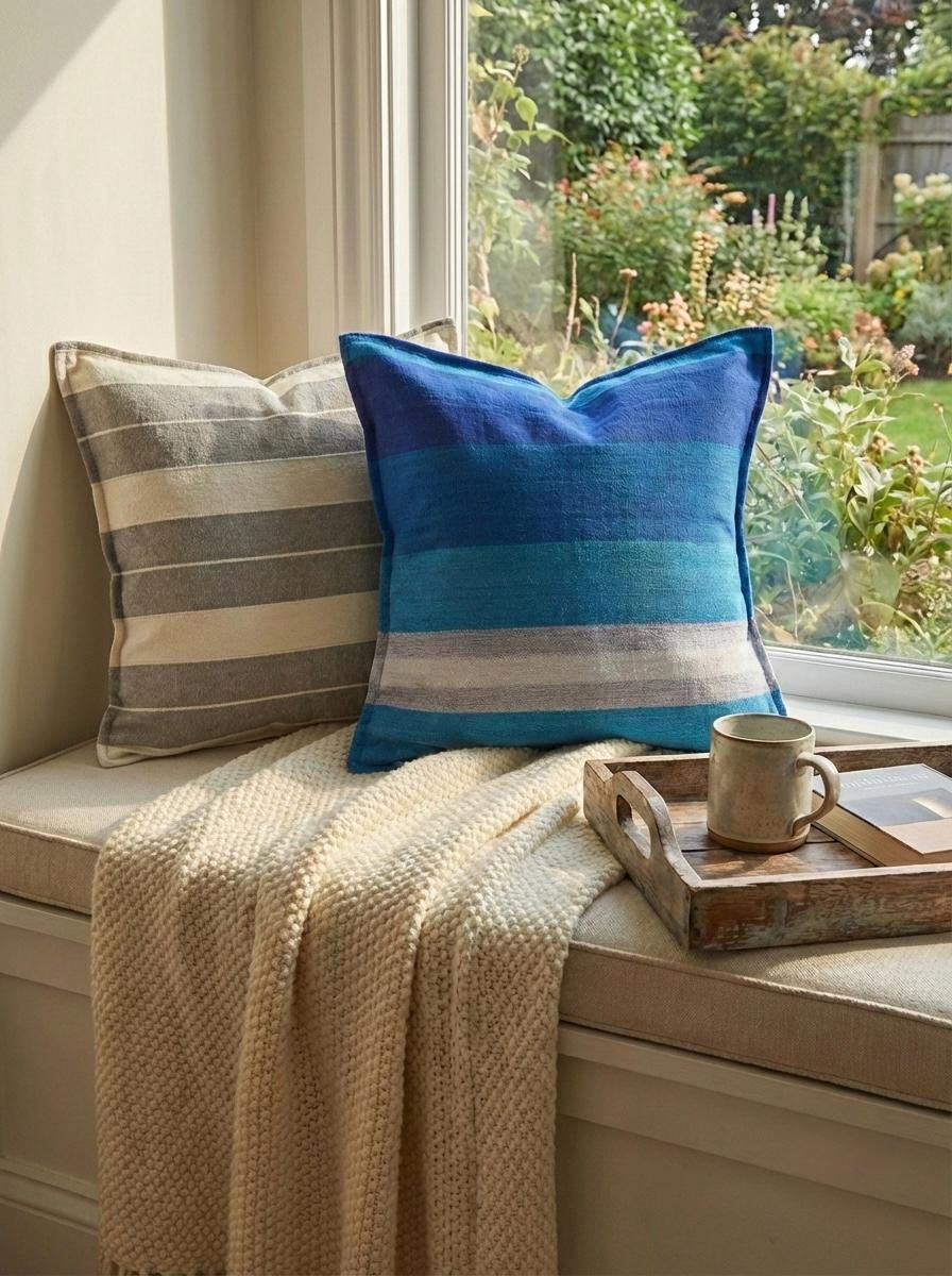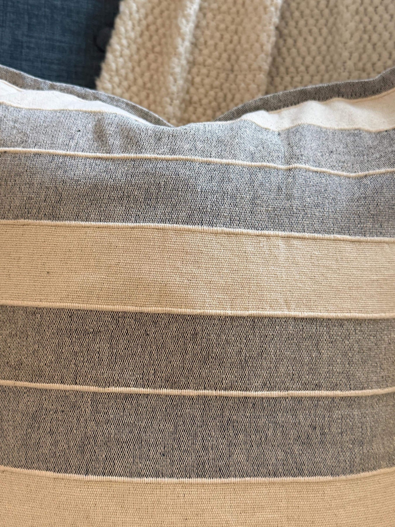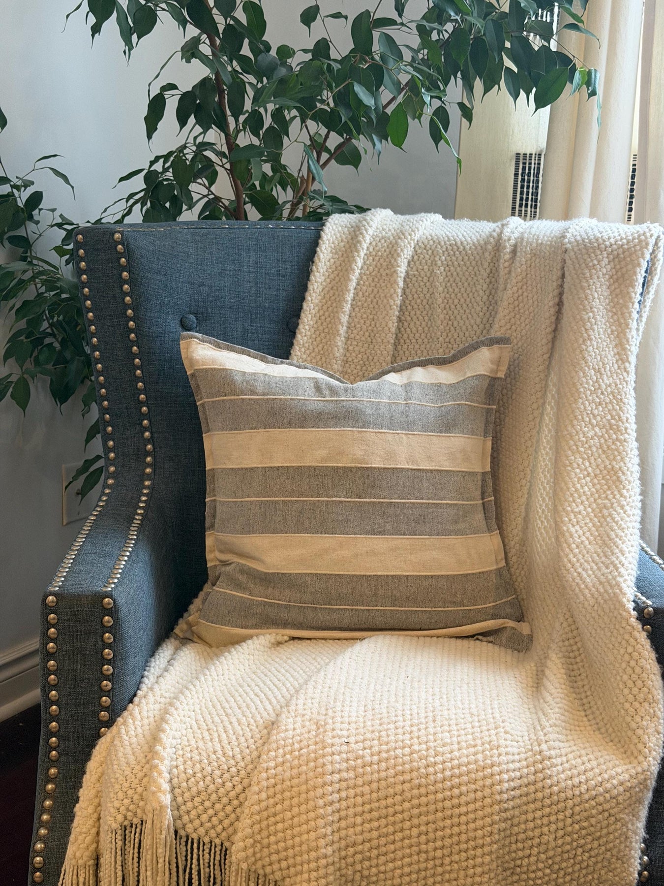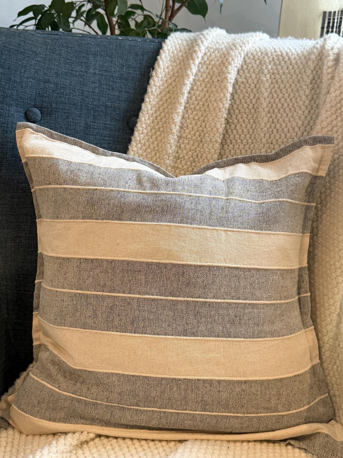 Bring a calm, modern touch to your living space with this gray striped throw pillow, designed to add a pop of color while staying clean, minimalist, and elegant. Featuring layered shades of grey and Ivory, this cushion pairs beautifully with neutral sofas, Scandinavian interiors, and contemporary spaces.