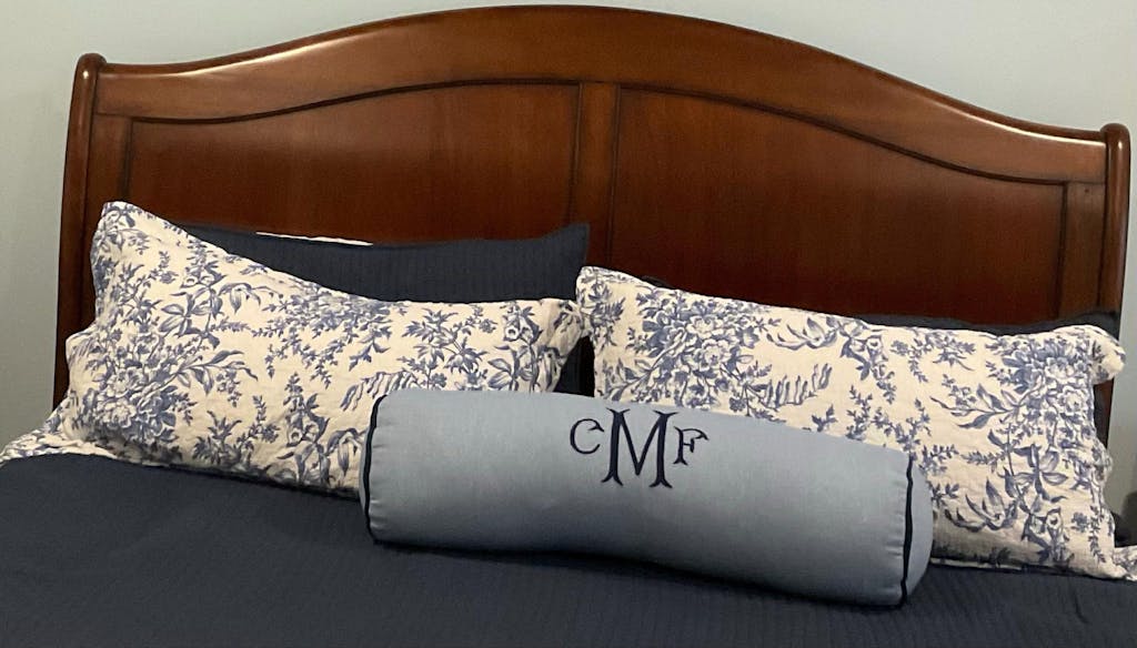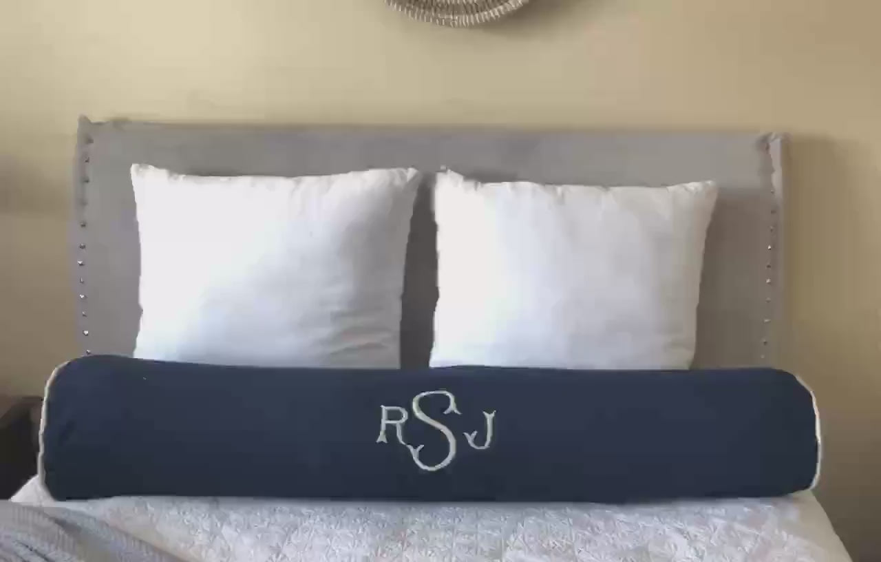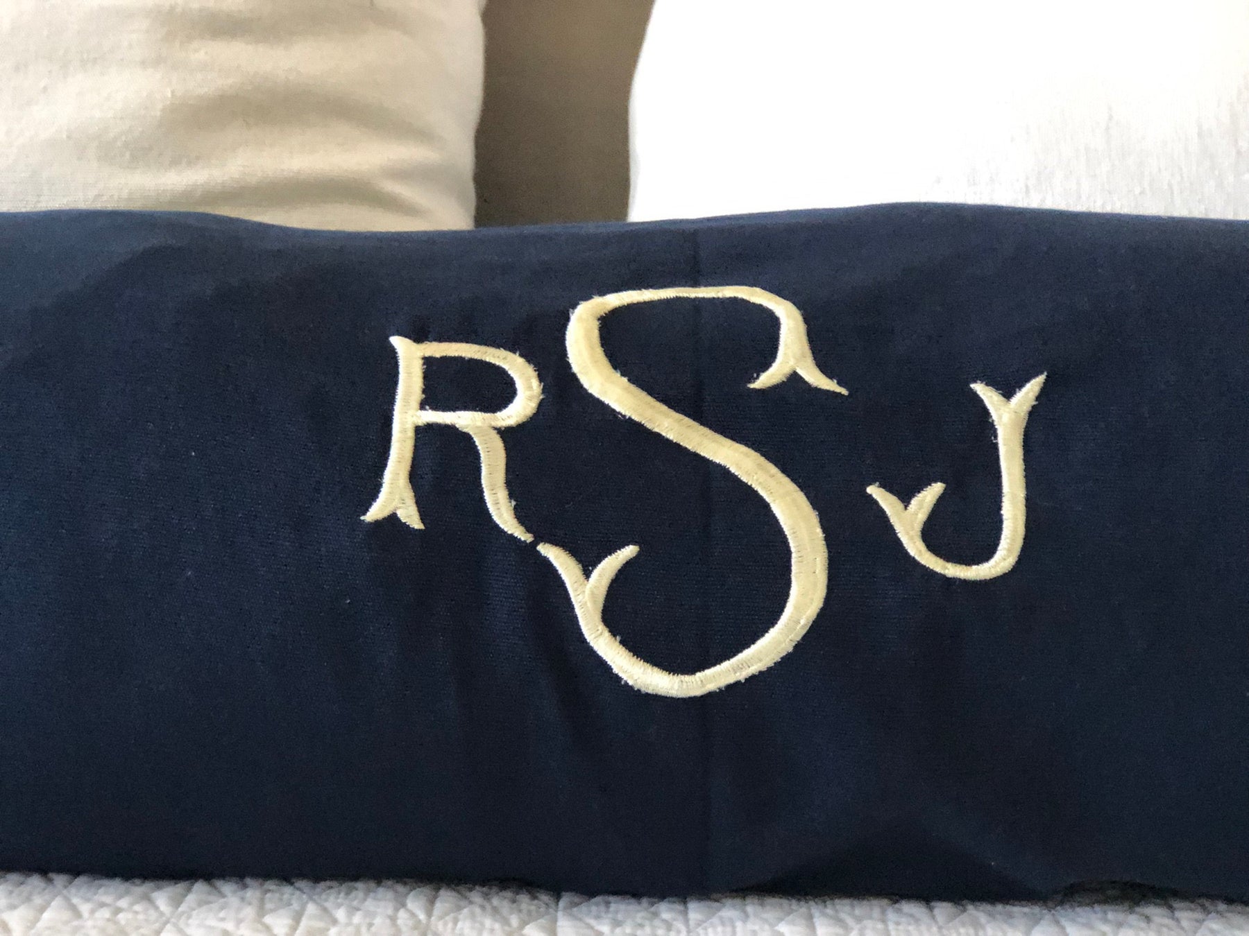 The Monogram Blue neckroll bolsters pillow cover is finished with Ivory piping. Personalize with a name, monogram, and letters. This 8"x54" Bolster pillow cover is easily removable with invisible zip. Can mix and match the piping and the fabric color you like. Please refer the last picture for custom orders. You can custom make any letters or initials. Bolster Pillows are great to add to your king bed, queen bed, or a give it as a gift.