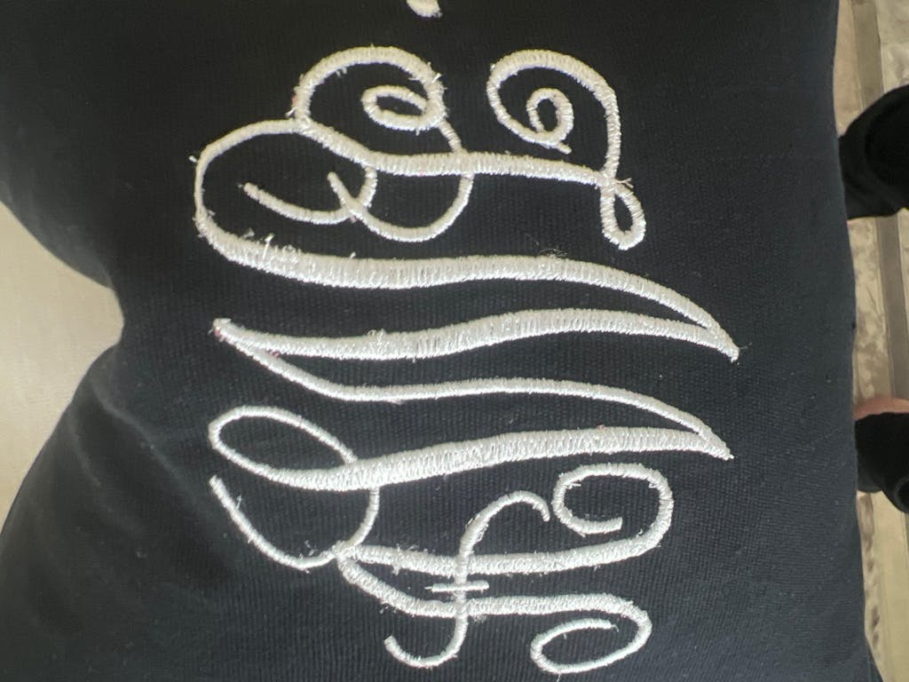 I haven't ever given a negative review, so it is hard to do this. The quality of the thread is poor. There were snags, fraying and loose threads. If I had pull the thread in numerous places I would have unraveled the entire letter. The length of the stitch is also important. Long stitches may save time, but the quality of the stitching goes down. Short stitches mean a smaller margin of error to the pattern. Not sure short stitches were used, much less the quality of the thread. Finally, the quality overall in my opinion is poor. I would buy a pillow and have a local company do the embroidery.