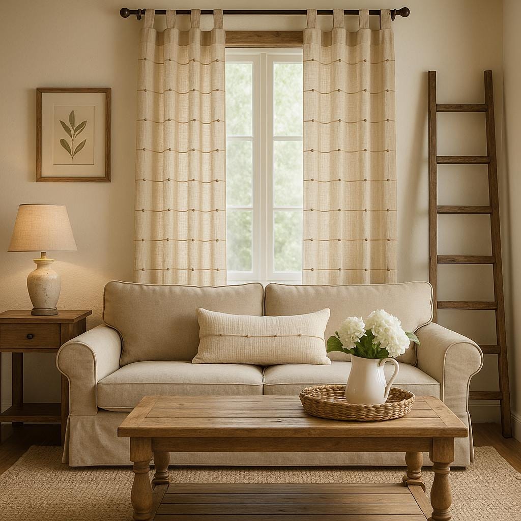 Handmade Cotton Curtain Panels, Tab Top, Farmhouse Style (2 panels)