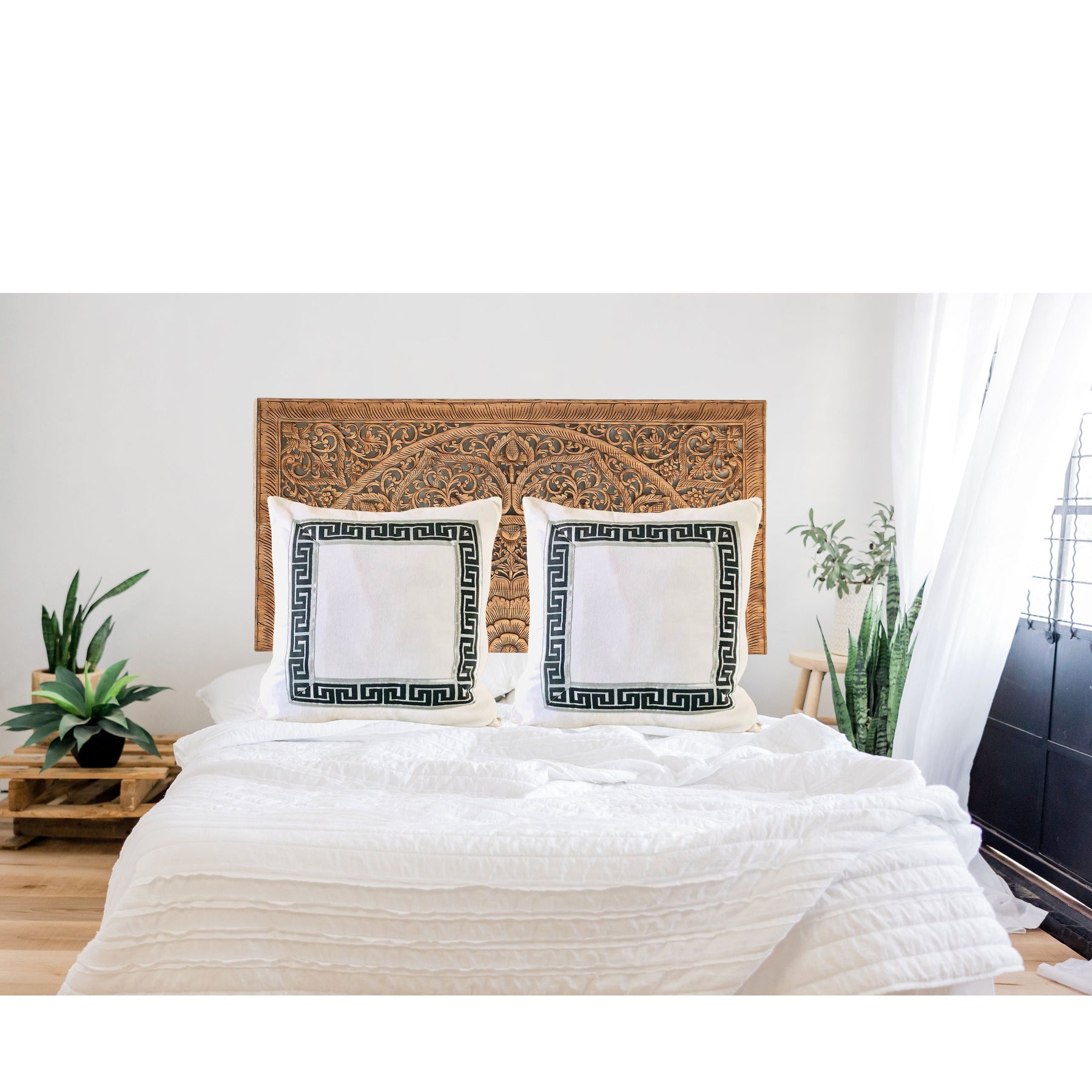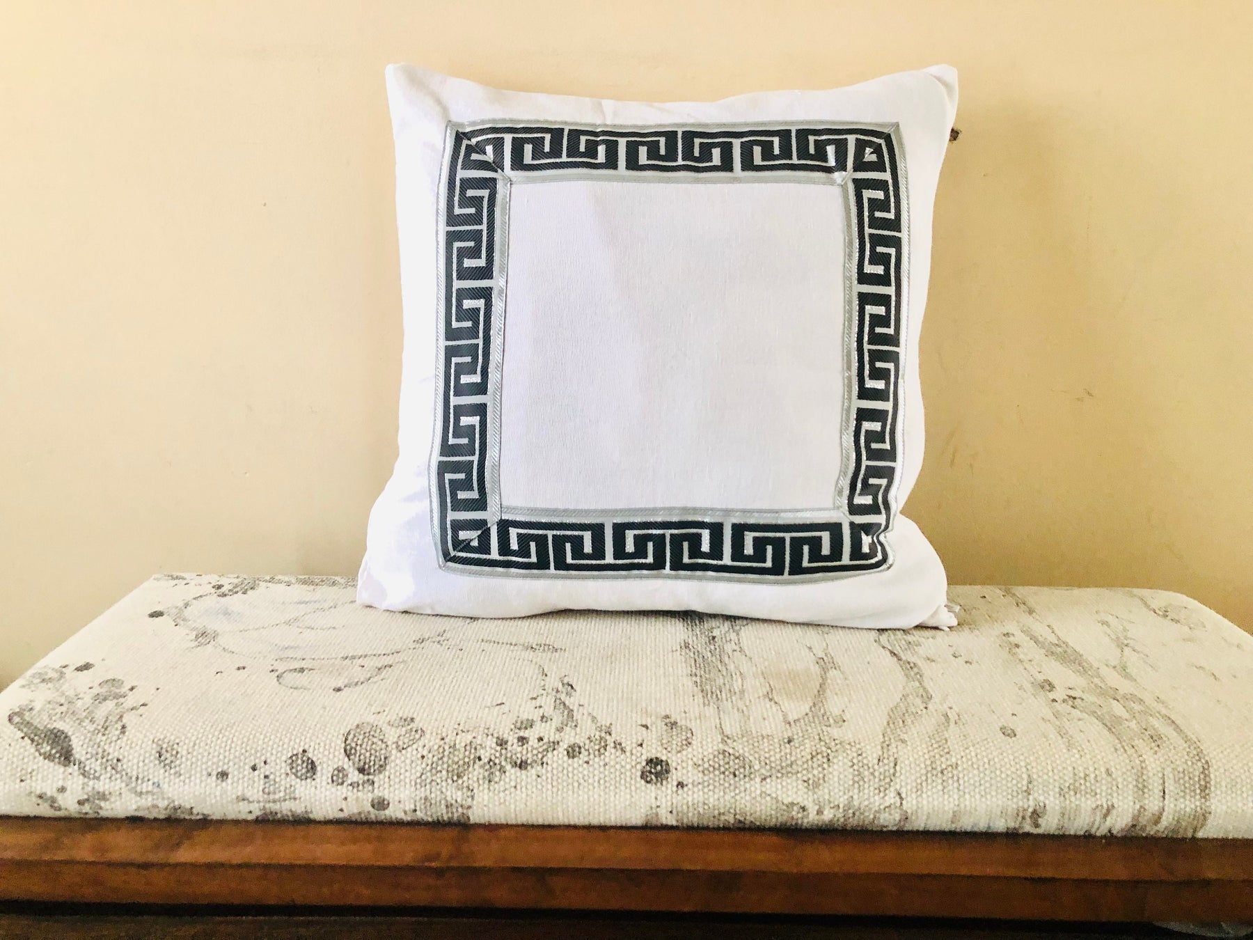 This Greek Key throw pillow gives a classic and luxurious charm to any home decor. The White square pillow is made with 100% hand woven cotton and great piece to add to your bedroom, entryway, living room this year.